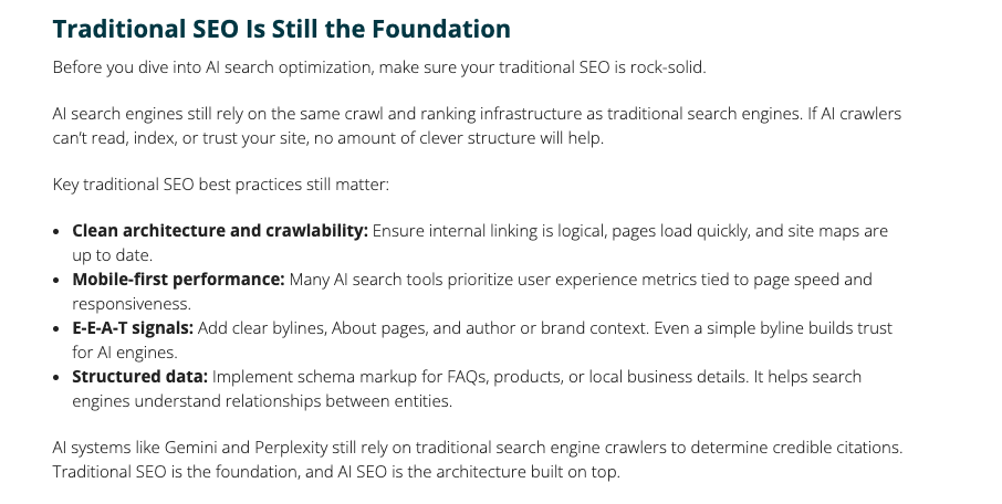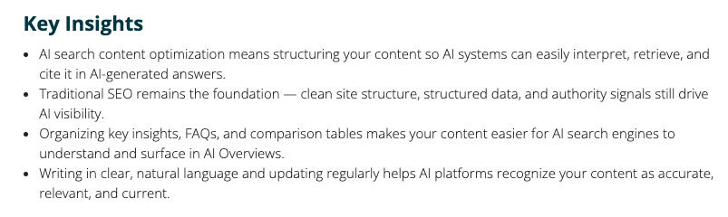 - Generative Engine Optimization (GEO) is the new frontier: The shift from ranking pages to providing “best answers” across platforms like Google AI Overviews, ChatGPT, Perplexity, and Gemini requires a different optimization approach.