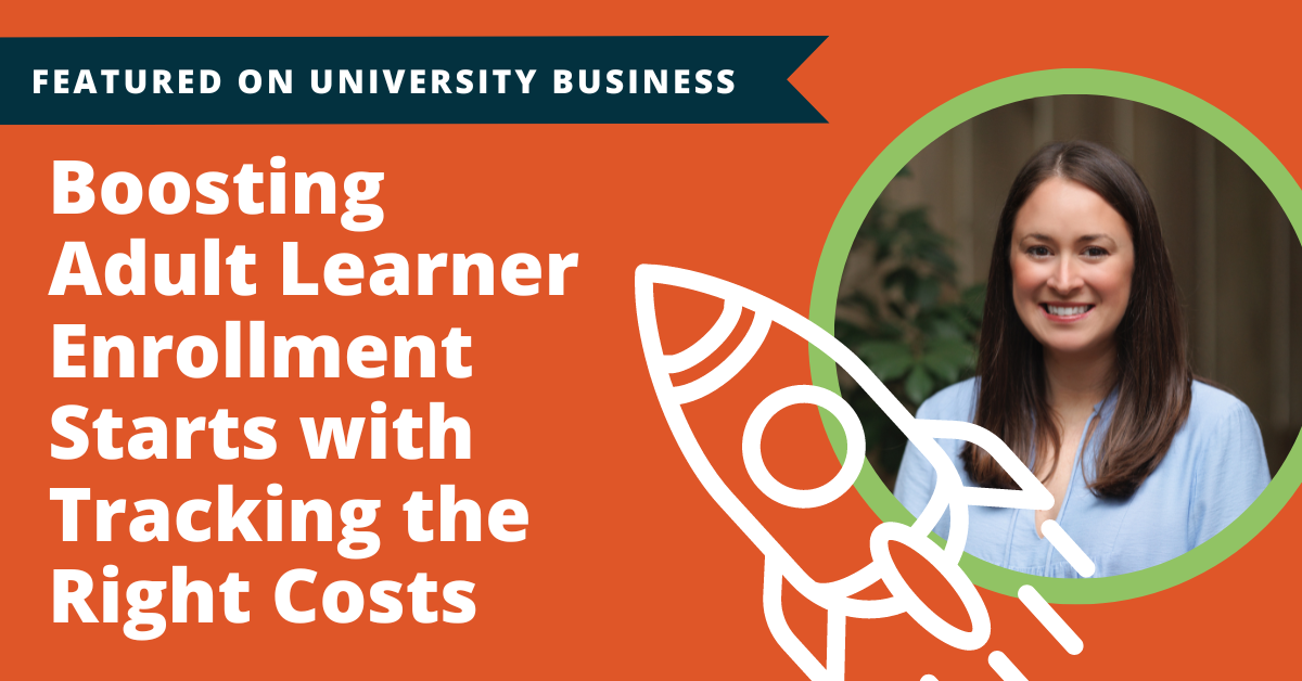 This article, titled “How to boost adult learner enrollment by tracking the right costs,” discusses the importance of establishing a metric-driven approach to efficiently attract the modern learner.