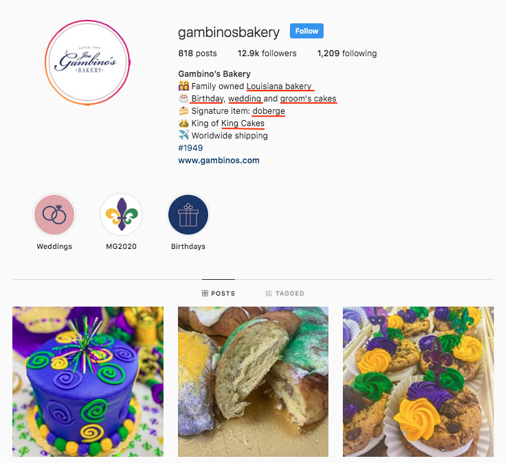 • Use a keyword-rich bio that includes your brand, industry, and (if relevant) your location. Write naturally, but make sure the words you’d want to rank for appear early.