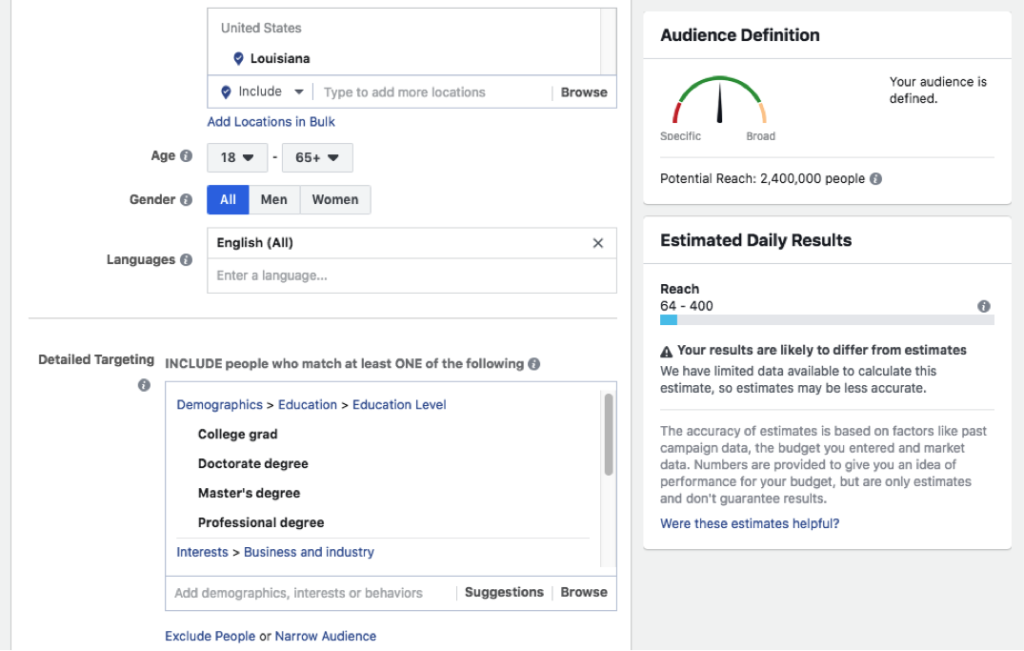 If you collect personal phone numbers and/or email addresses from current clients, you’ll want to look into lookalike audiences. This is Facebook’s way of finding people who have the same interests as your current customers, so when your brand is put in front of them, they’re more likely to convert.