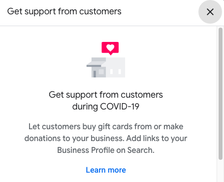 Screenshot of get support from customers option offered by Google My Business