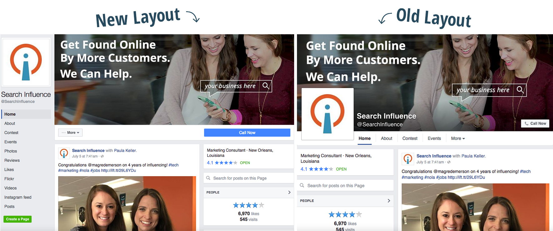 Although businesses won’t be able to get creative with the overlapping interactive profile images, the relocation of the square profile picture actually frees up a lot of valuable visual real estate on the cover photo that was once covered up by the image, company name, and CTA buttons. Even if you didn’t have interactive profile images on your business page, there’s a lot of space—over 20% of the area of the cover photo to be exact—that was considered off limits for content and is now fair game. Even on the new mobile version of business profiles, the cover photo isn’t covered up by the profile picture or text.