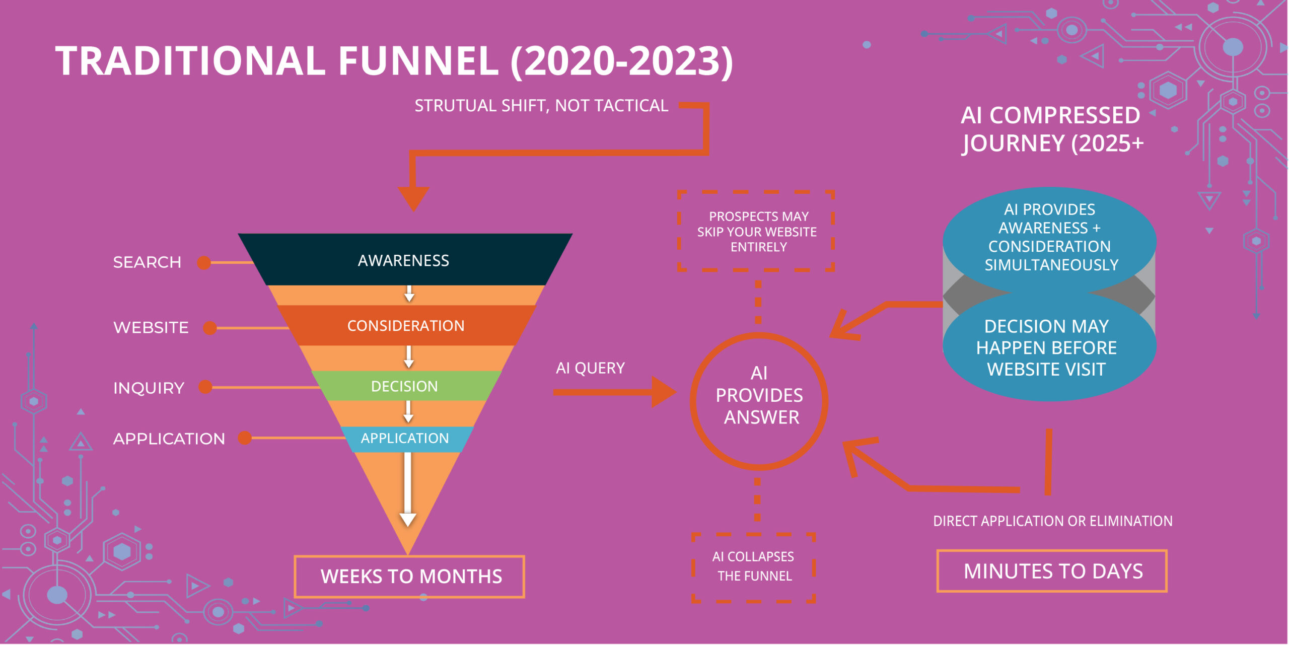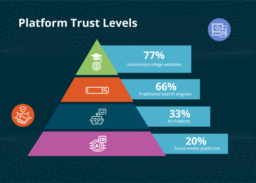 AI visibility is increasingly tied to credibility. 56% of prospects say they are more likely to trust brands cited by AI Overviews. Even as AI tools gain traction, 77% of prospects still trust university websites over other sources, reinforcing the importance of accurate, authoritative institutional content.
