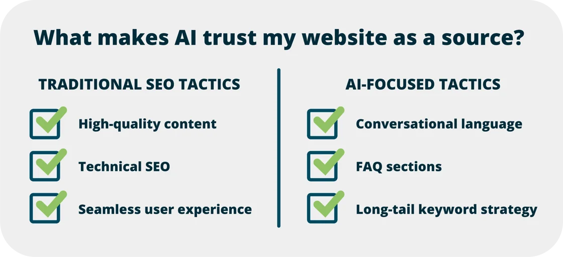 AI SEO is not replacing traditional SEO. It is strong foundational SEO plus smarter content structure.