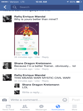 With an online group, start looking for pokémon with other coworkers or anyone who works in the same building. Organize walks on breaks, poke crawls at happy hour, or battle plans to conquer a gym in the name of your building. A Facebook group is a good way to find motivation through friendly competitive rivalries.