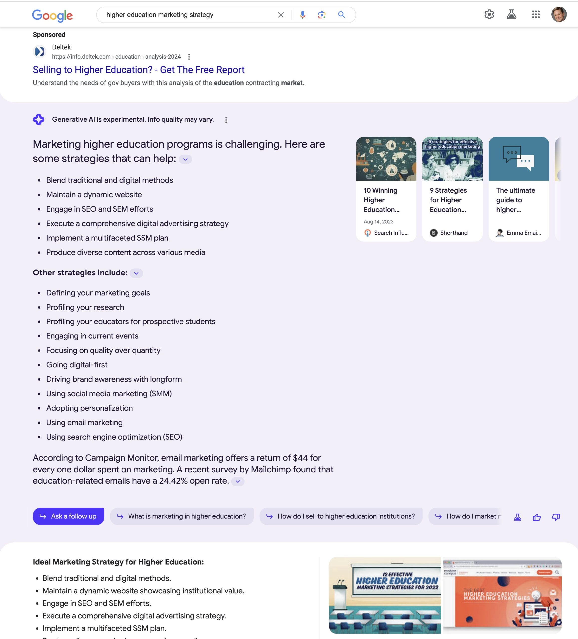 AI Overviews now answer many search queries directly within search engine results pages. This reduces clicks to organic search results and compresses visible real estate. Paid search ads often remain one of the most prominent placements on the page.