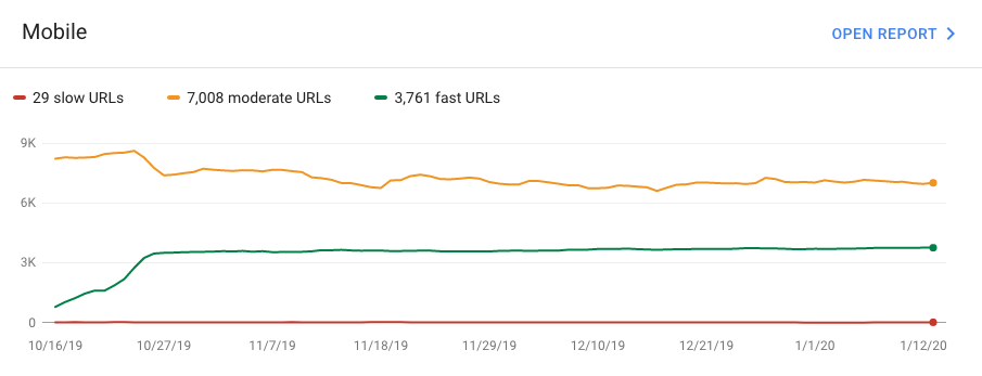 This became increasingly visible to digital marketers when they rolled out site speed evaluation in Search Console. Google is essentially giving people feedback about their site speed in the hopes that flagging this will lead developers and businesses to try to create better mobile experiences for users. As seen below, this a report that is now standard in all Google Search Console reports.