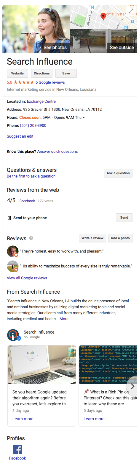 If you need help implementing code or appearing higher on Google’s search results, the Google and SEO experts at Search Influence can help. Contact us today.